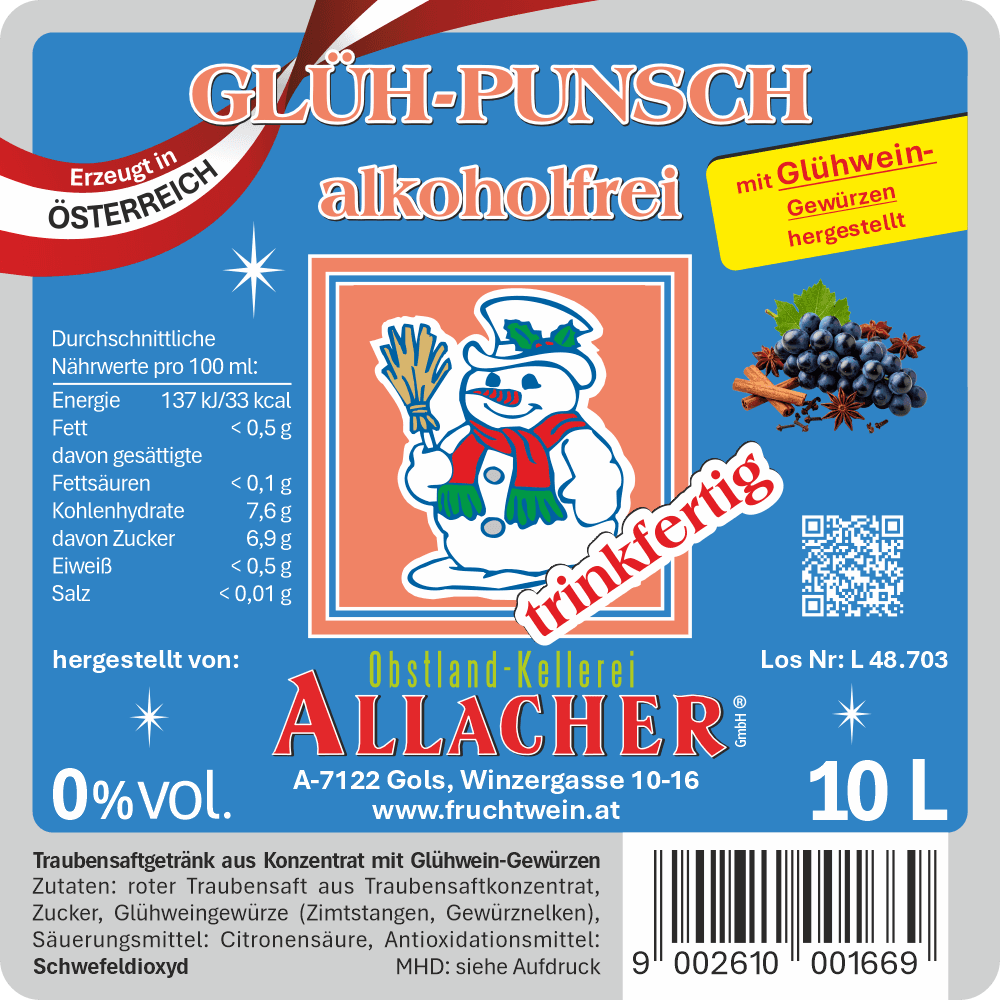 | Ingredients | Red grape juice from grape juice concentrate, sugar, mulled wine spices (cinnamon sticks, cloves), acidifier: citric acid, antioxidant: sulphur dioxide |