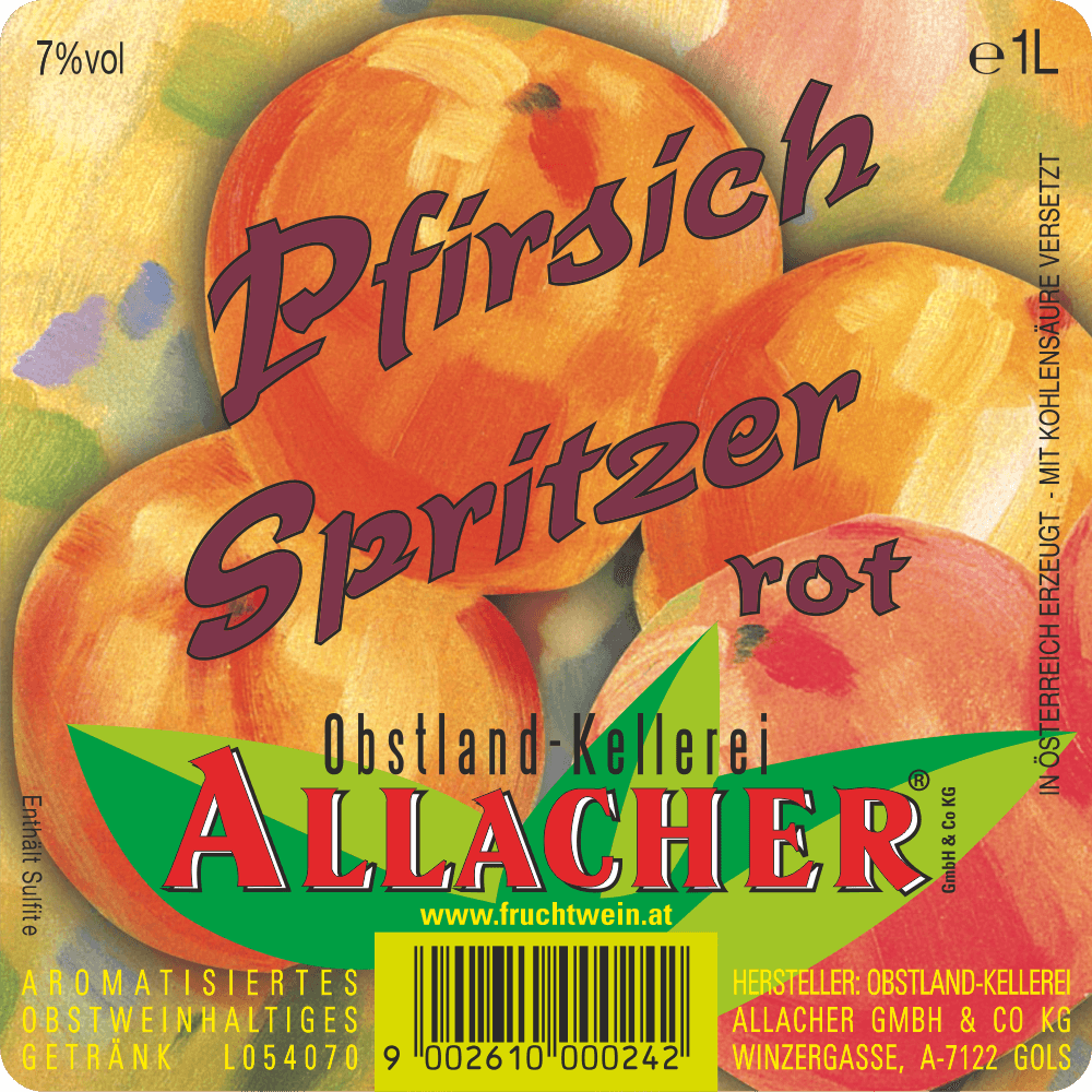 | Servierempfehlung | Durch die Versetzung mit Kohlensäure ist unser Pfirsich-Spritzer bereits trinkfertig – einfach kühl und pur genießen! Wer es gerne etwas leichter mag, kann ihn natürlich auch mit Soda mischen! |